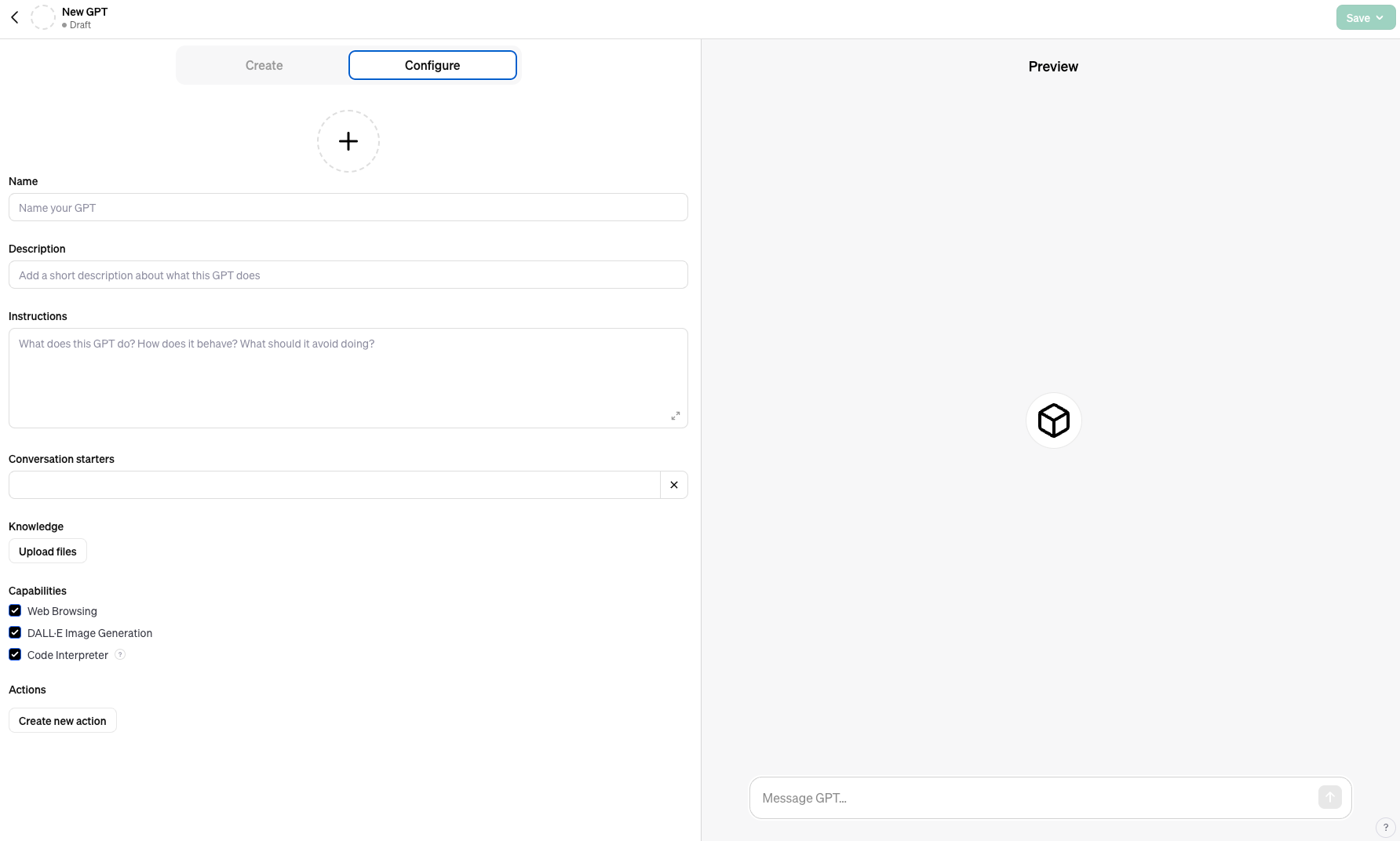 Chatに関しては、質問に応えていく形式で簡単にGPTを作ることができます。